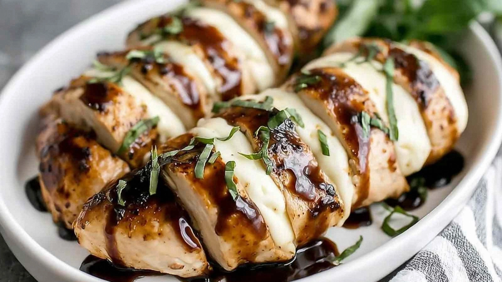Replace the chicken with thick slices of portobello mushroom caps. The mushrooms absorb the balsamic glaze and develop a meaty texture. Top with mozzarella and bake as directed for a hearty vegetarian main.
